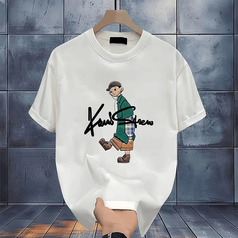 Lässiges Herren-T-Shirt mit Cartoon-Muster 100% atmungsaktive Baumwolle 180 Gramm Stoff gewicht